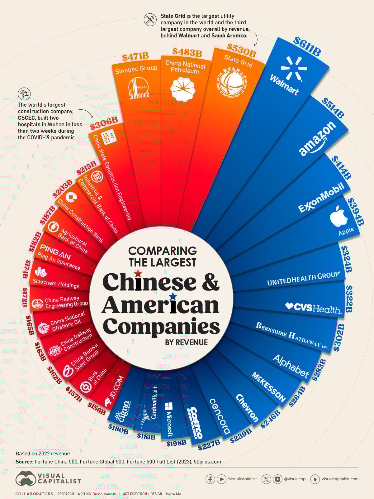 Ranking the Largest Companies by Revenue: USA vs. China (Source)